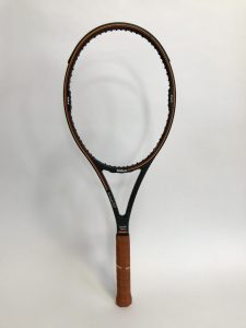 このラケットは、エドバーグやサンプラスなど、数々のチャンピオンが使用した名器です。ラケット面のサイズは85平方インチ、今では考えられない程の小さな面のラケットです。